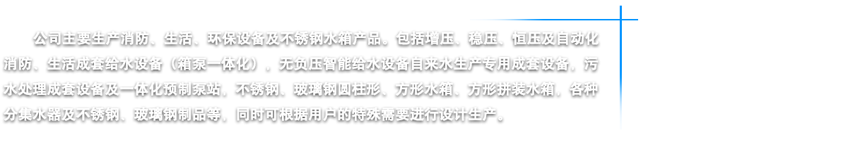 江蘇燁達(dá)環(huán)保設(shè)備有限公司坐落在江蘇省鹽城市建湖縣城,東臨黃海之濱,背倚蘇北平原,處于長(zhǎng)三角經(jīng)濟(jì)一體化和江蘇沿海開(kāi)發(fā)兩個(gè)國(guó)家級(jí)戰(zhàn)略疊加區(qū)域內(nèi),素有“水鄉(xiāng)明珠”美稱(chēng)。我公司鑒定走“產(chǎn)、學(xué)、研”相結(jié)合的路子,是江蘇省供水設(shè)備行業(yè)的大型企業(yè)。公司以“一流的管理,一流的研發(fā)設(shè)計(jì),一流的質(zhì)量意識(shí),一流的售后服務(wù)”為宗旨,嚴(yán)格控制原材料質(zhì)素,講求“品質(zhì)是企業(yè)的生命力”的理念,嚴(yán)把質(zhì)量關(guān),從而為客戶(hù)提供優(yōu)質(zhì)的供水設(shè)備。公司主要生產(chǎn)消防、生活、環(huán)保設(shè)備及不銹鋼水箱四大類(lèi)產(chǎn)品。包括增壓、穩(wěn)壓、恒壓及自動(dòng)化消防、生活成套給水設(shè)備(箱泵一體化),無(wú)負(fù)壓智能給水設(shè)備自來(lái)水生產(chǎn)專(zhuān)用成套設(shè)備,污水處理成套設(shè)備及一體化預(yù)制泵站,不銹鋼、玻璃鋼圓柱形、方形水箱、方形拼裝水箱,各種分集水器及不銹鋼、玻璃鋼制品等,同時(shí)公司可根據(jù)用戶(hù)的特殊需要進(jìn)行設(shè)計(jì)生產(chǎn)。燁達(dá)人將以科學(xué)的管理、精湛的技術(shù)、可靠的質(zhì)量、優(yōu)良的品質(zhì)向社會(huì)各界服務(wù),我們始終坦誠(chéng)相見(jiàn),我們當(dāng)然走在最前面······ |